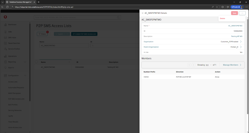 It’s easy to delete a P2P SMS ACL within the Vodafone Business Managed IoT Connectivity Platform – as long as you have the necessary authorisation level.