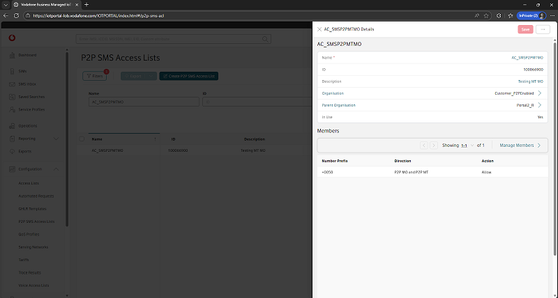 To view more detailed information, simply select the relevant P2P SMS Access List.