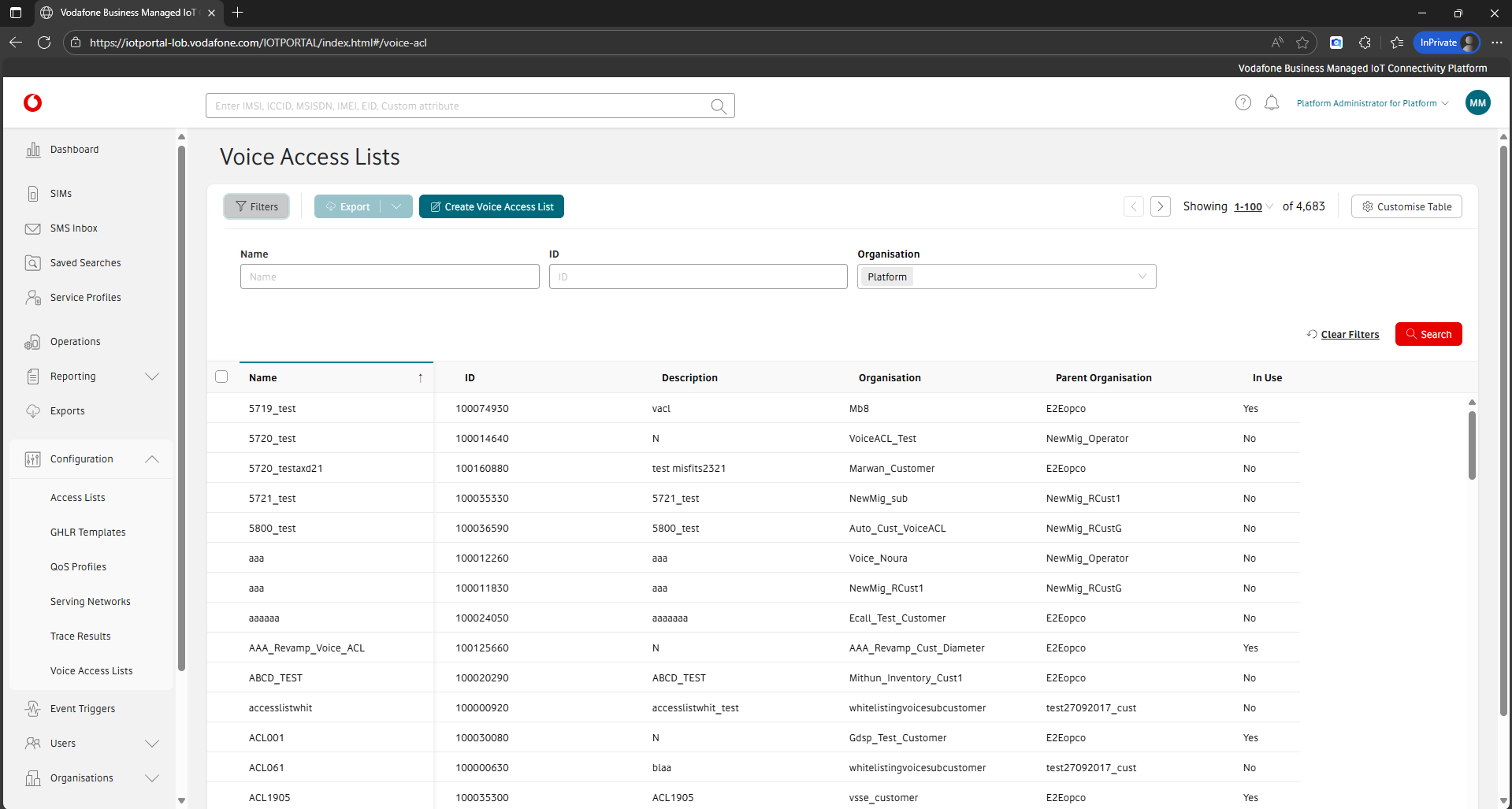 Voice access lists (ACLs) enable secure voice communication by allowing customers to define access lists that restrict calls to and from specific numbers, ensuring compliance, preventing misuse, and supporting emergency use cases across 2G, 3G, and VoLTE networks.